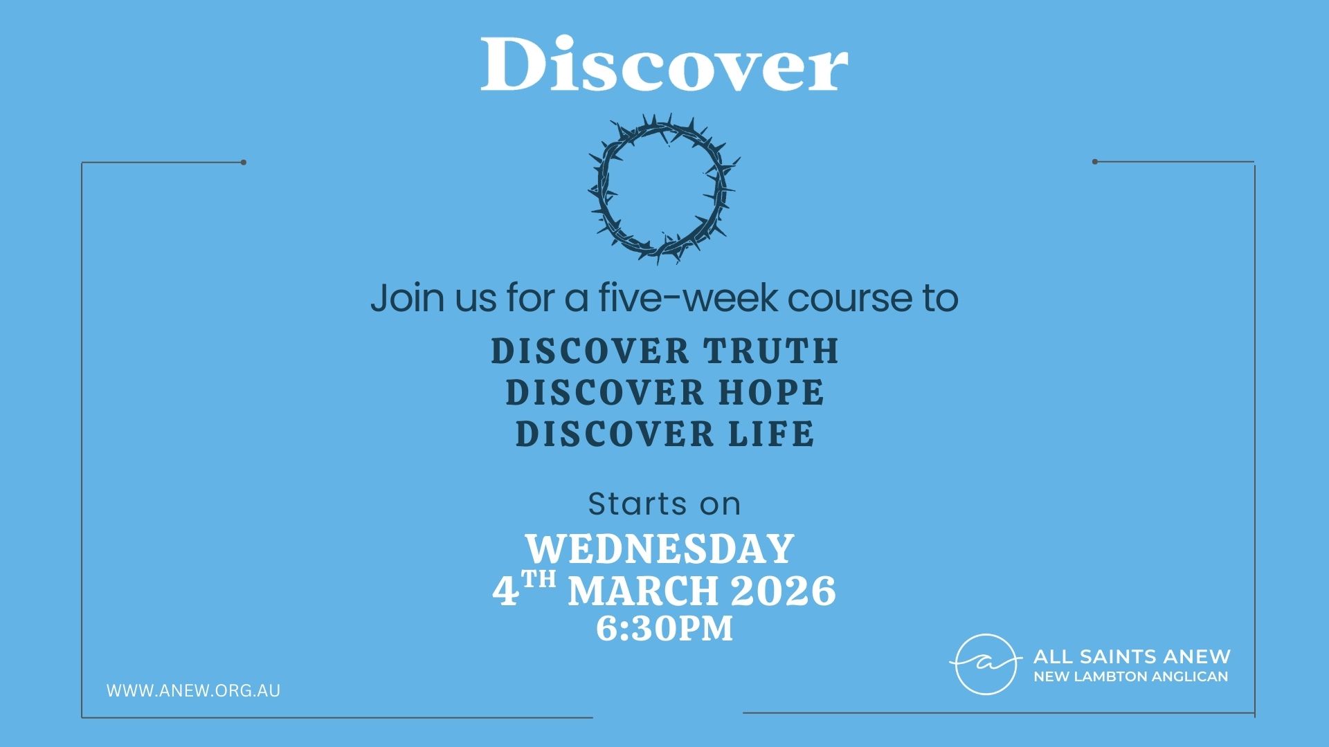 The Discover Course runs for 5 weeks, beginning Wednesdat 4th March at 6.30pm. We would love to provide dinner each week, so please let us know if you have any dietary requirements: